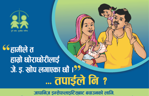 - Work together - At the start of the project, JE and its burden were not well understood at global and national levels. To gain and maintain the necessary support from global, regional, and local partners to tackle JE, PATH used advocacy to raise awareness and build consensus for JE control. For example, the team collected new and existing data and information on the burden and control of JE, which it reconfigured and disseminated to various audiences. These included a series of training presentations, messaging, fact sheets, newsletters, case studies, peer-reviewed publications, a vaccine introduction decision-making guide, social media resources, media outreach, and 3 films for use by stakeholders and health officials in advocacy efforts (2 of which aired on BBC World and were broadcast in more than 200 countries). UNICEF played a key role in developing information, education, and communication (IEC) materials for social mobilisation, like the one above (from Nepal), in countries introducing the vaccine. Among the roles various partners played in the effort were those of country advocates and experts, who helped determine the burden of disease, conducted and supported clinical trials, raised local and global awareness around JE, convinced country governments to introduce JE vaccine into routine immunisation, and increased country demand. Countries also learned from each other's experiences and expertise and took a leadership role in driving momentum in global discussions.