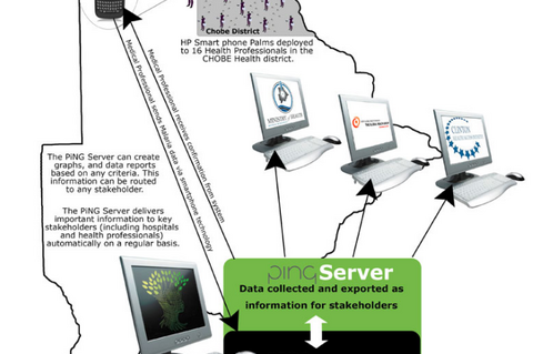 PING has equipped health care workers at 16 facilities in the Chobe District of Northern Botswana with HP Palm Pre 2 smart phones. Healthcare workers received training to use the mobile devices to collect malaria data and upload reports, audio, and video. The phones allow facilities to submit regular reports back to the Ministry of Health (MoH) and give health workers the ability to report real-time disease outbreak data, tag the data with GPS coordinates, and issue SMS disease outbreak alerts to all other healthcare workers in the area.