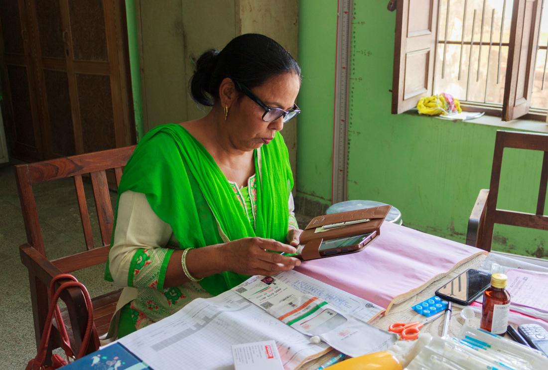 J-PAL website, July 24 2020, and 3ie website, July 24 2020 and September 10 2020. Image caption/credit: A nurse uses a tablet for data collection at a clinic in Haryana. Lisa Corsetto|J-PAL