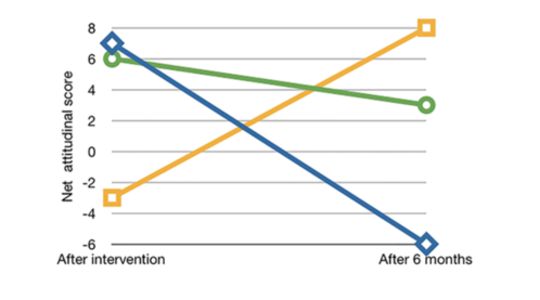 Pre-intervention attitudinal scores were generally positive (simulation-based intervention group: 31.4/40; presentation-based intervention group: 32.5/40; control group: 31.5/40), suggesting that this group was already well-disposed towards vaccination. According to the researchers, this may account for the fact that there was no significant difference in attitudes after receiving the intervention.