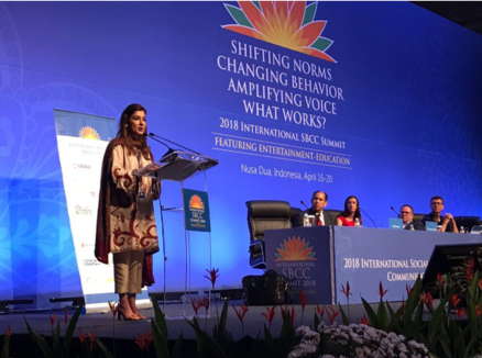 Email from Royal D. Colle to The Communication Initiative on September 18 2018; and "Engaging, Educational, Inspirational 2018 SBCC Summit Comes to a Close", by Stephanie Desmon, April 24 2018 - accessed on September 18 2018. Image credit: Senator Ayesha Raza Farooq via Twitter