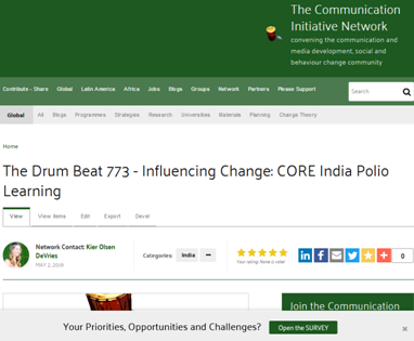 For its wider network, MCSP used the network of The CI, which stands at 103,000 members who registered with The CI website and/or subscribed to one of its newsletters, in combination with events, such as the SBCC Summit in Nusa Dua, which brought together people working on communications across a range of development sectors. These networks provided MCSP with an audience of potentially interested people and organizations to disseminate polio communication lessons beyond the world of polio.