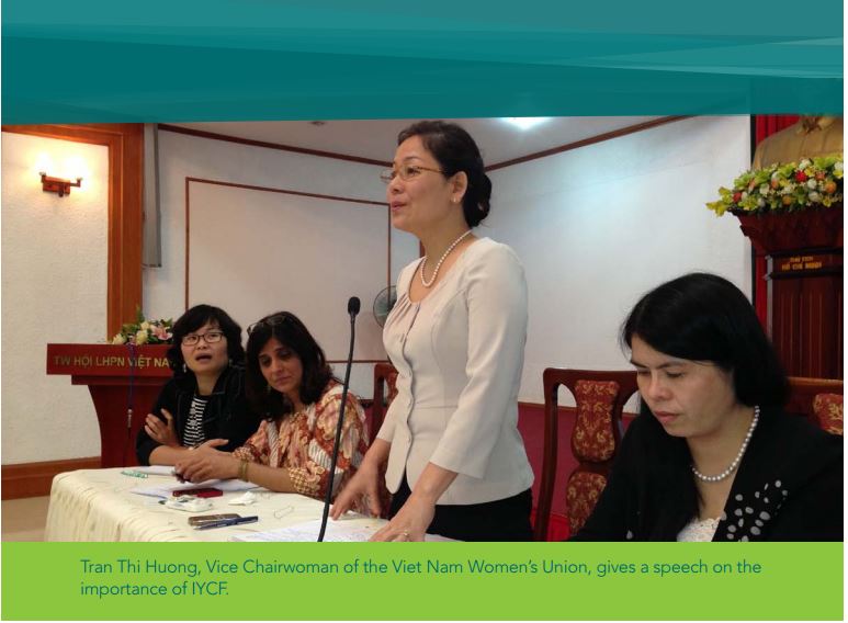 Alive and Thrive website, May 24 2017. Image caption: Tran Thi Huong, Vice Chairwoman of the Viet Nam Women’s Union, gives a speech on the importance of IYCF.