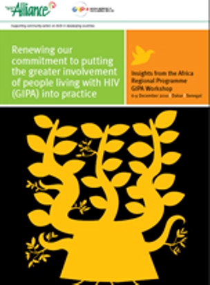 The International HIV/AIDS Alliance and the Global Network for and by People Living with HIV (GNP+) held a workshop December 6-9 2010 in Dakar, Senegal, to discuss how people living with HIV are involved in delivering HIV programmes in Africa. The workshop was based on the recently developed greater involvement of people living with HIV (GIPA) good practice guide. Although the principle of GIPA is not new, this document was prepared to emphasise the importance of revisiting and applying it in HIV programmes so that people living with HIV can play an effective role in how HIV work is shaped and run in their countries.