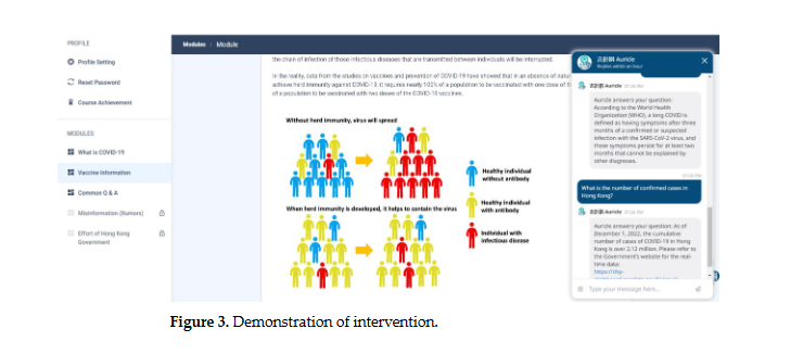 - Module topics (e.g., myths about COVID-19 vaccines) were identified, and module contents (e.g., common myths/rumours regarding vaccine safety and efficacy) for each topic and their adaptations for conversational Q&A were developed. To enhance the trustworthiness of module content, two research team members conducted data searches from medical databases (e.g., MEDLINE), the WHO's COVID-19 special website, Hong Kong government websites, and other official sources to identify relevant information and receive regular updates. Multiple-choice questions were designed for each module to encourage reflection, interaction, and engagement.