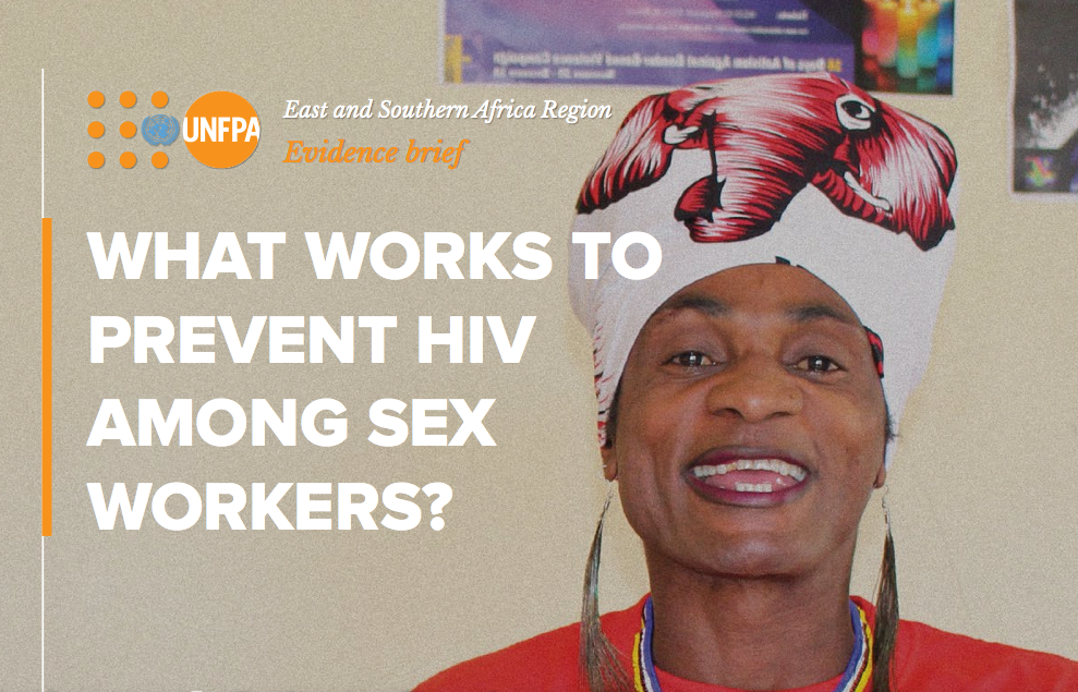 This brief, published by the United Nations Population Fund (UNFPA) East and Southern Africa (ESA), looks at the evidence on what works to prevent HIV infection among sex workers and identifies some of the challenges to implementation as well as strategies to overcome barriers. The literature for this review was sourced through multiple electronic databases and grey literature. Literature deemed eligible for review included systematic reviews, reviews, and intervention evaluations of specific HIV/sexually transmitted infection (STI) interventions conducted worldwide, and focused on FSWs. In total, seven systematic reviews were found and summarised (two of which are from LMICs, including Sub-Saharan Africa and South Africa between, 2005 and 2015), and a total of 28 papers were included in this evidence review.