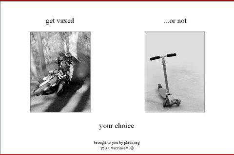 The Your Choice! campaign is built on the foundations of behaviour change communication (BCC), attempting to send the message to young people that they should take charge of their lives by choosing vaccination. The Your Choice! website offers resources to share, including videos, print ads, handouts for patients and parents, and stories of young people who have become seriously ill or died from vaccine-preventable illnesses. The image above is one of those featured in the print ads, showing young people on the one hand, looking healthy and/or doing active things, and then - on the flip side - what they would look like or how their activities would be compromised if they fell ill or died. PKIDs encourages individuals or organisations to download and submit these ads to a local newspaper or other print publication, or to post on a bulletin board or share via social media. "Please feel free to add your organization's name and contact info to the ad." Young people are also asked to participate by spreading the word: "you're never too old for immunizations. Clue your friends in and #YourChoice all over the place! We'll be looking for it on all the social media sites, and we'll feature catchy phrases and original content that get the word around. It's your body, it's your life, and it's Your Choice. Immunize and stay healthy!"